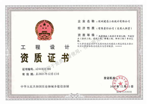 深圳建昌工程設計有限公司成立于2006年,是國家住建部批準的建筑行業(yè)建筑工程設計甲級、城鄉(xiāng)規(guī)劃編制甲級、風景園林工程設計甲級、工程咨詢甲級、工程監(jiān)理甲級及其它相關(市政工程、人防工程、勘察測量、造價咨詢等)乙級資質(zhì)單位。通過多年發(fā)展與積累,公司已建設成為資質(zhì)齊全、產(chǎn)業(yè)鏈完整、在國內(nèi)具備相當實力的工程行業(yè)服務企業(yè)。?
